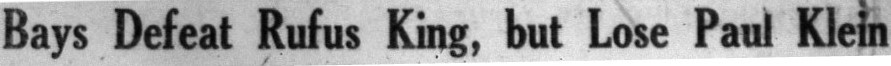 In the first game ever played on the new Bay football field the Bay beat Milwaukee Rufus King 13-7 behind touchdowns from Bob McCahill and Paul Klein. But they suffered a catastrophic loss.