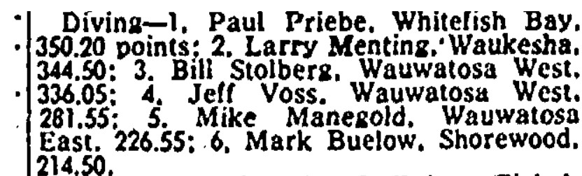 It’s interesting that for two years Priebe was basically competing against the same older guys at Suburban and State. My hope is that Larry Menting, Bill Stolberg and Jeff Voss have spent much time over the last 60 years cursing out that bad, bad boy from Whitefish Bay — Paul Priebe.