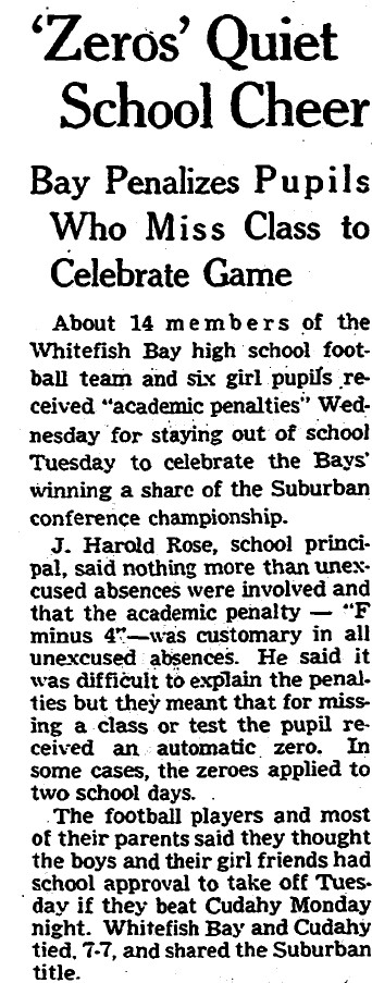Almost 70 years later, it’s easy for a know-it-all smartass like me to mock the decisions that were made in what was a very different era. But to this day the players are still furious about how they were treated by the Whitefish Bay high school administration. They don’t know how heavily, or even if, Vice-Principal Roeder was involved. They only saw Principal Rose.