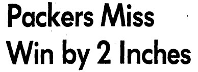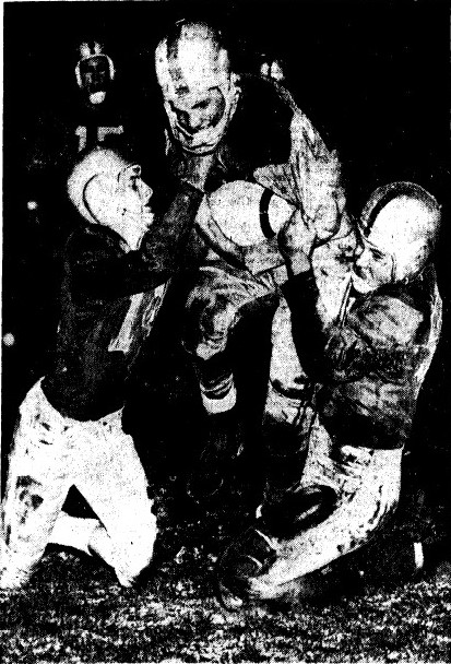 The Packers put together a drive and had 1st and goal at the Bay 5 with 49 seconds left. Bay end Dave Crowley broke through and dropped Cudahy QB Dennis Simuncak for a three yard loss. Cudahy ran a reverse on the next play and gained seven yards down to the 1. That was a huge tackle in space by the player(s) that made it.