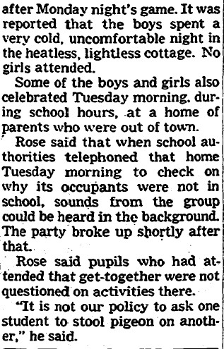 Principal Rose’s comment that “It’s not our policy to ask one student to stool pigeon on another” would soon be shown to be complete bullshit.