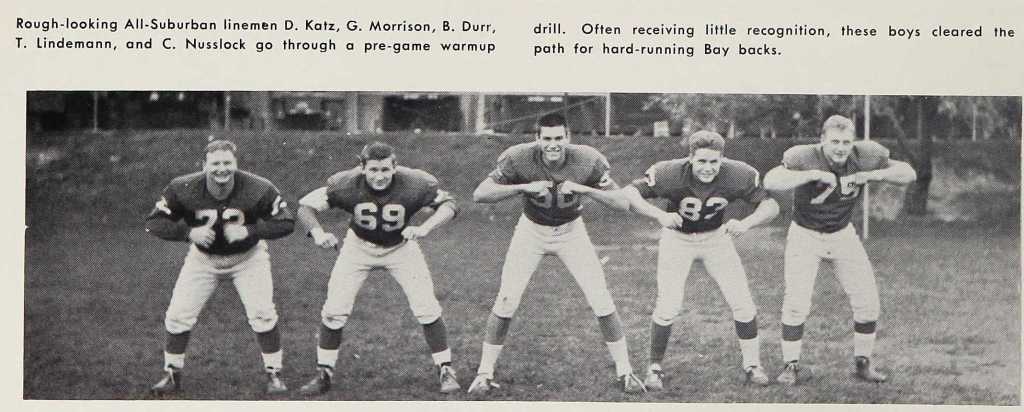 Bill Durr, Dave Katz, Tom Lindemann, Guy Morrison and Cary Nusslock were All-Suburban lineman in football. That team was extraordinary.