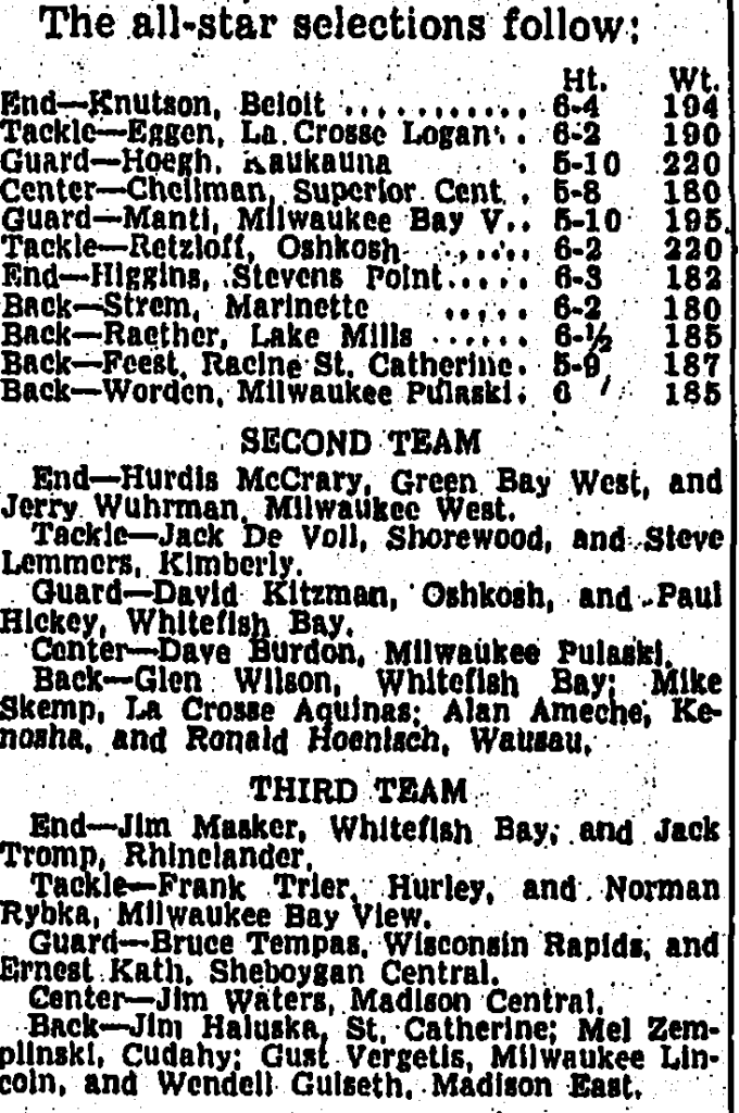 Wilson and Hickey were 2nd-Team All-State and Masker 3rd-Team. Buzz shared 2nd-team with a back who would become his teammate on the Badgers.